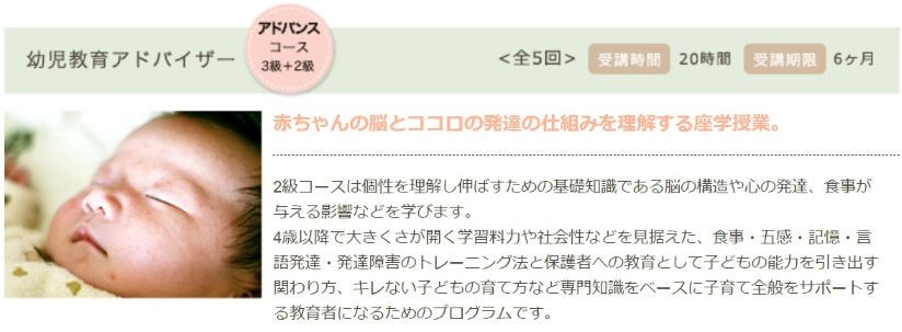 | 受講時間 | 乳幼児教育アドバイザー(初級) |