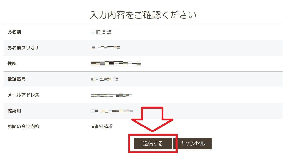 最後に、入力内容を確認し、「送信する」を押せば、“無料資料請求”の完了です!